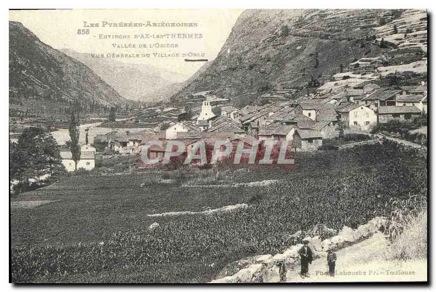 REPRO Les Pyrenees Artistique Environs d'Ax les Thermes Vallee de l'Oriege vue generale du Village d