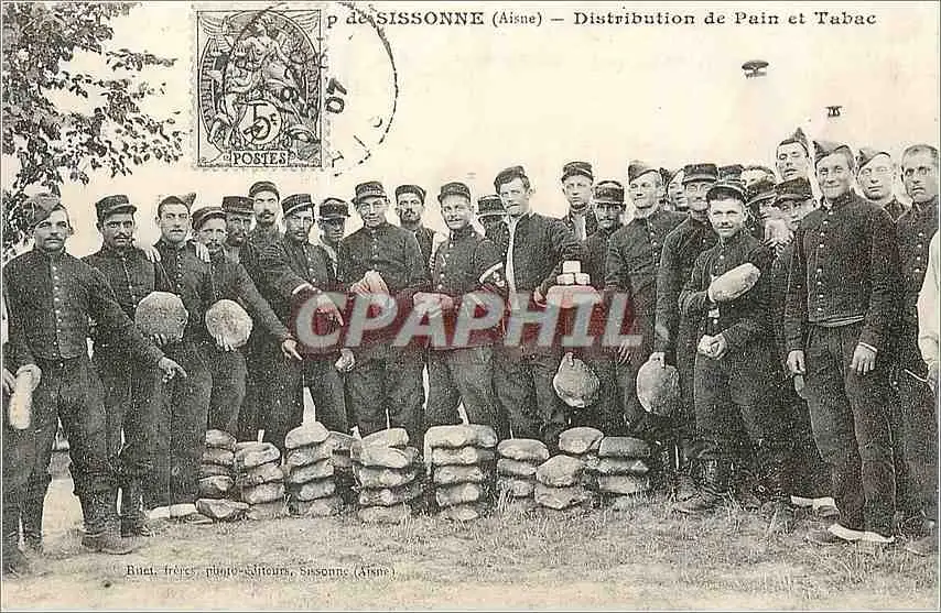REPRO Sissonne (Aisne) Distribution de Pain et Tabac Militaria