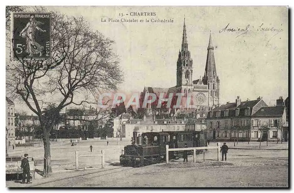 REPRODUCTION Chartres La place Chatelet et et la cathedrale Train