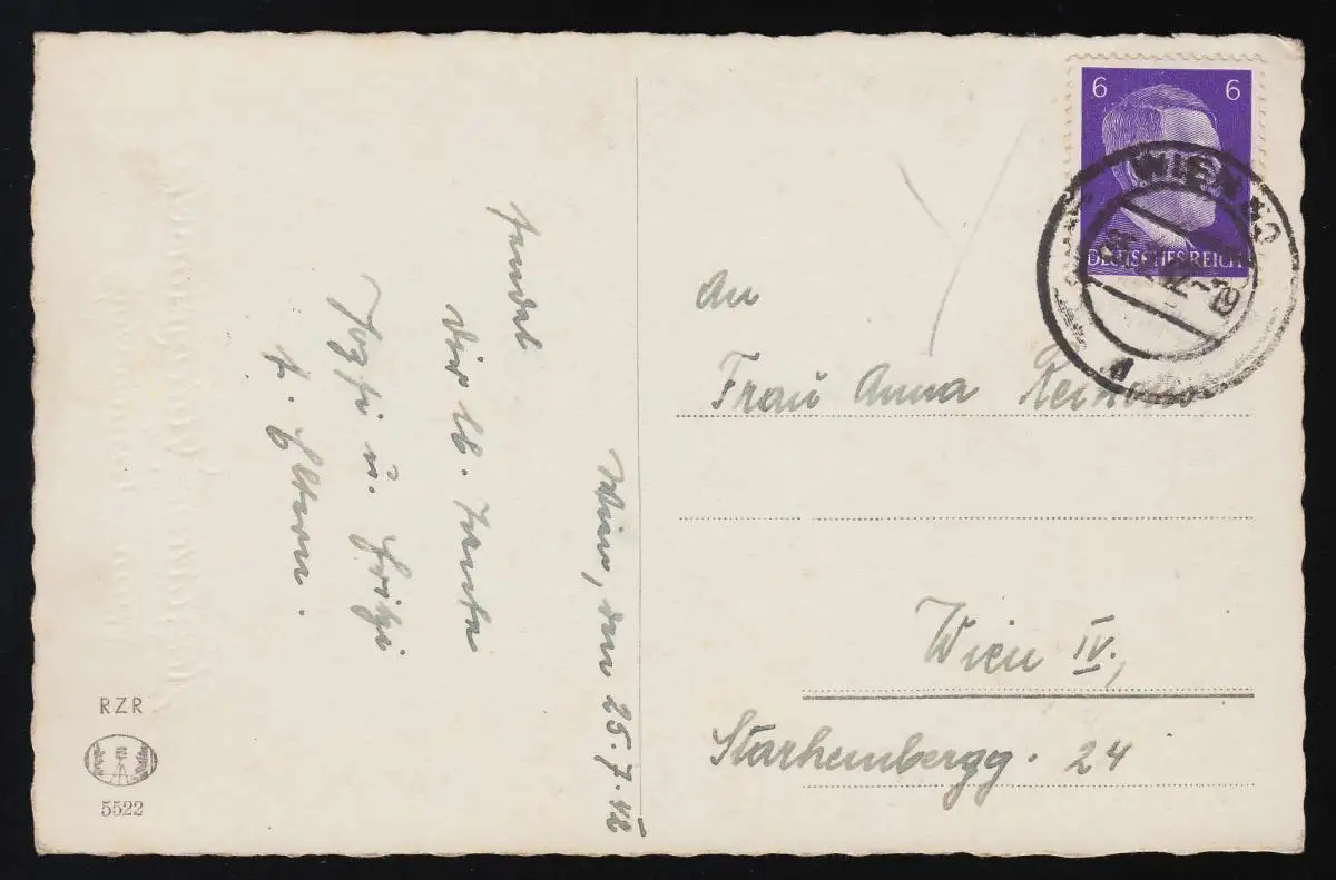 RZR Photo AK 5522, délicatement colorés roses fleurs, jour de nom, Vienne 25.7.1942