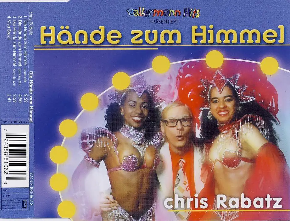 CD Single Chris Rabatz - Mains Au ciel, État CD G+ Enveloppe M-; Fabriqué en Europe 1999 EMI Electrola 7243 8 88106 2, Tracks [Radio Edit] 2:59, [Dancing Mix] 4:50, (Karaoke Mix) 2: 59, Viva Brazil 2:47