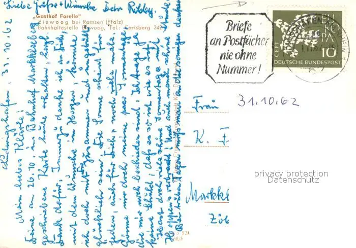 Ramsen_Pfalz Gasthof Forelle Eiswoog Stausee Ramsen Pfalz postalisch gelaufen 1962 Erhaltung siehe scans [FriedD77] Frierer