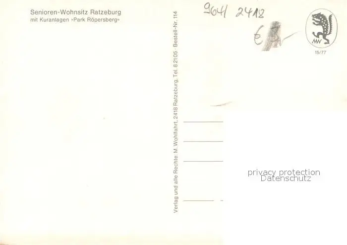 Ratzeburg Senioren Wohnsitz Ratzeburg mit Kuranlagen Park Roepersberg Ratzeburg postalisch nicht gelaufen nach 1965 Erhaltung siehe scans [WerneD78] WernPID7