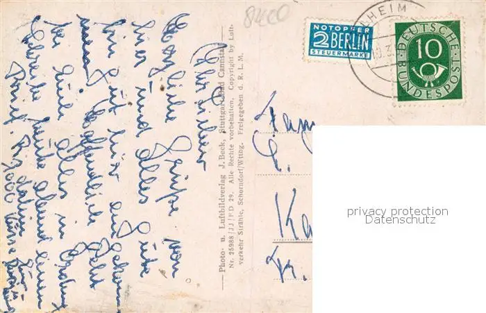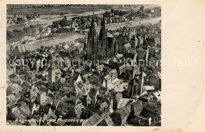 Regensburg Stadtzentrum mit Dom St. Petrus Fliegeraufnahme Regensburg postalisch gelaufen 1954 Erhaltung siehe scans [FriedD77] Frierer