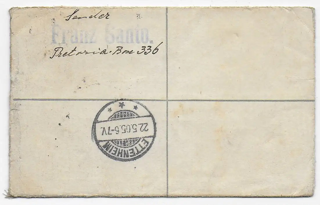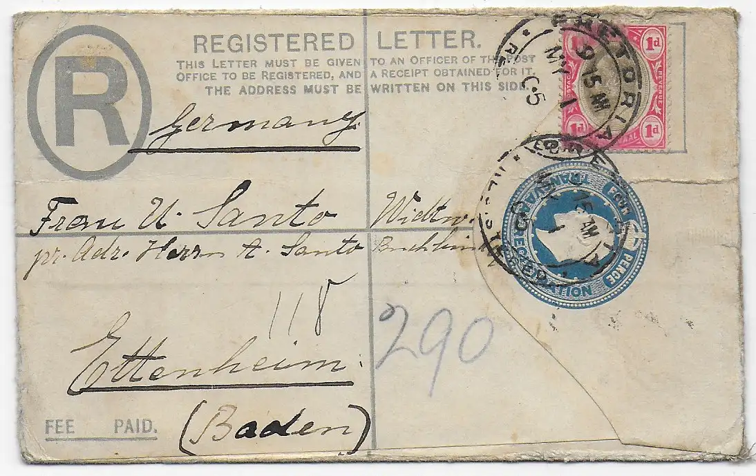 Registered letter 1905 Transvaal vers Ettenheim