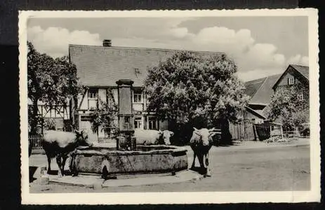 Rehe. Oberwesterwald. Idyll am Dorfbrunnen - Gelaufen. 1954.. (NPLZ 56479).