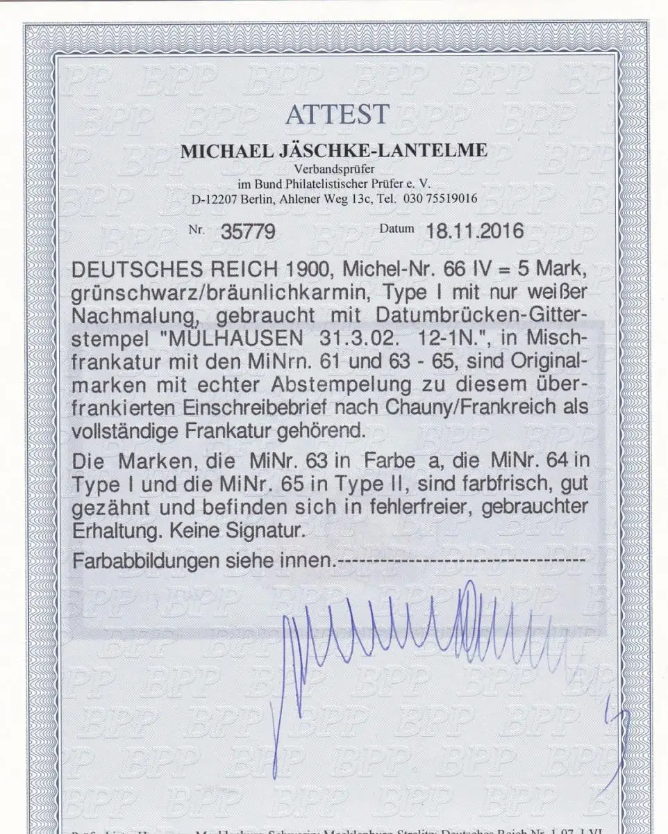 Reich allemand:MiN° 61, 63-66 sur lettre R (66 IV Type I) sur lettres, BPP Attest