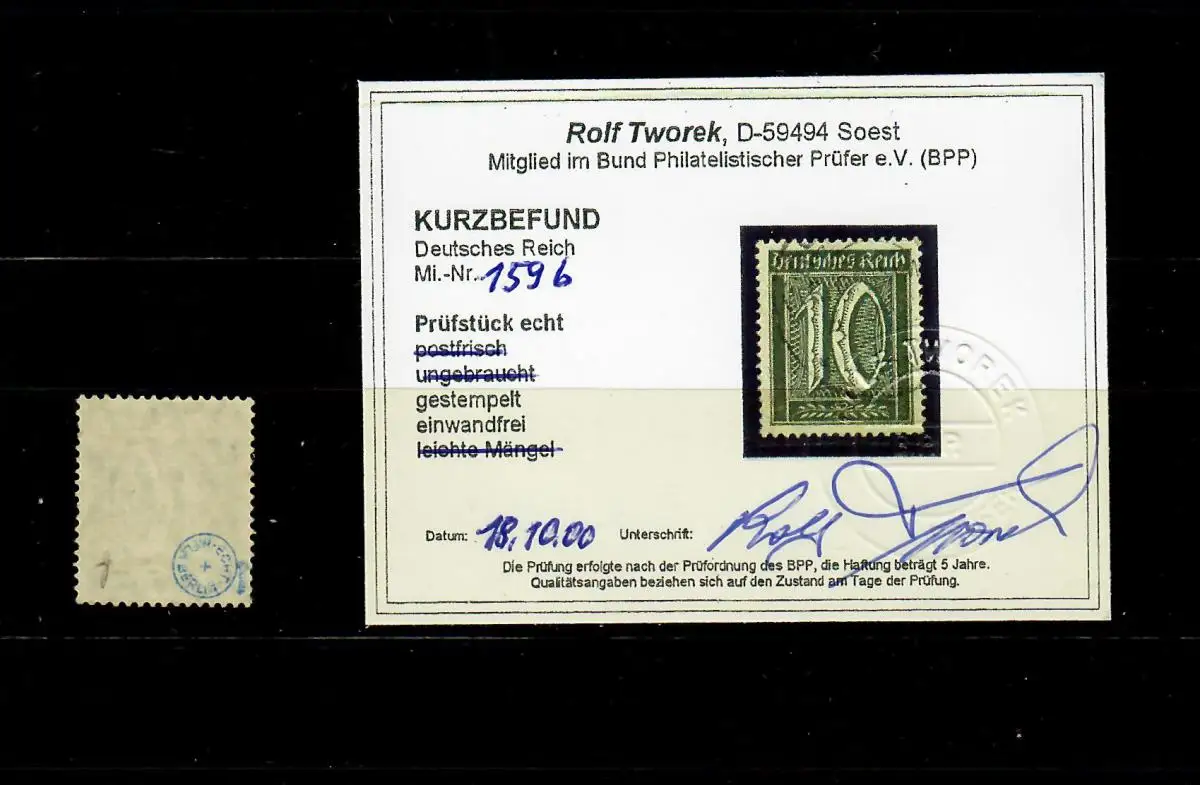 Reich allemand: MiNr. 159b, cacheté, BPP résultat