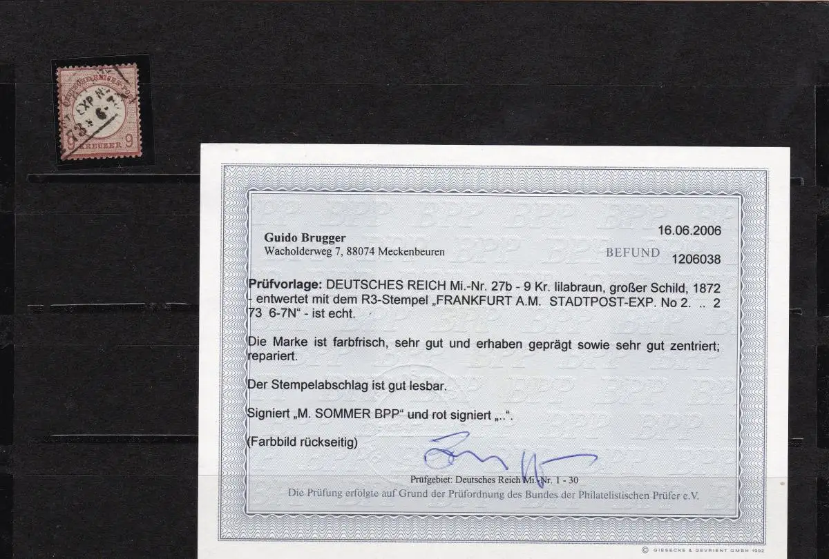 Reich allemand: MiNr. 27b, BPP résultat, cacheté