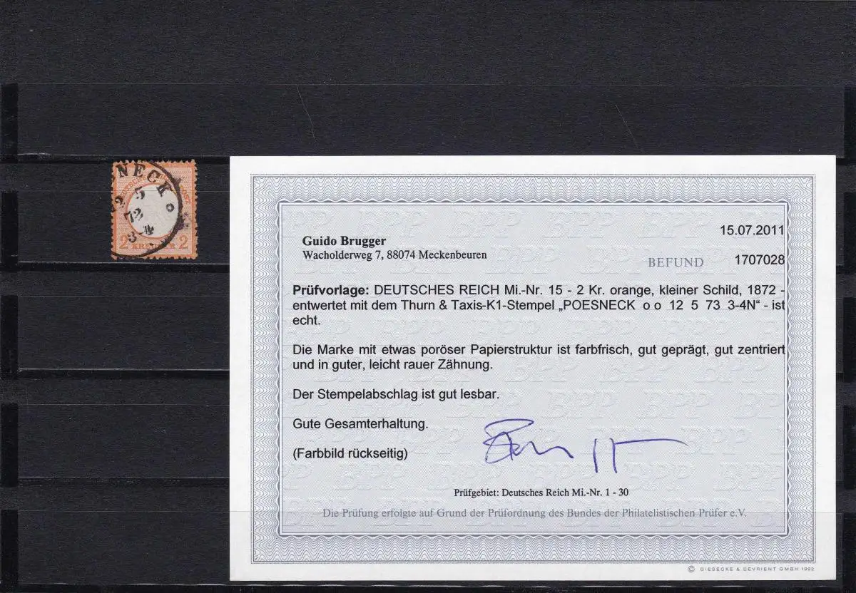 Reich allemand: Min. 15, cacheté, petit bouclier, BPP résultat