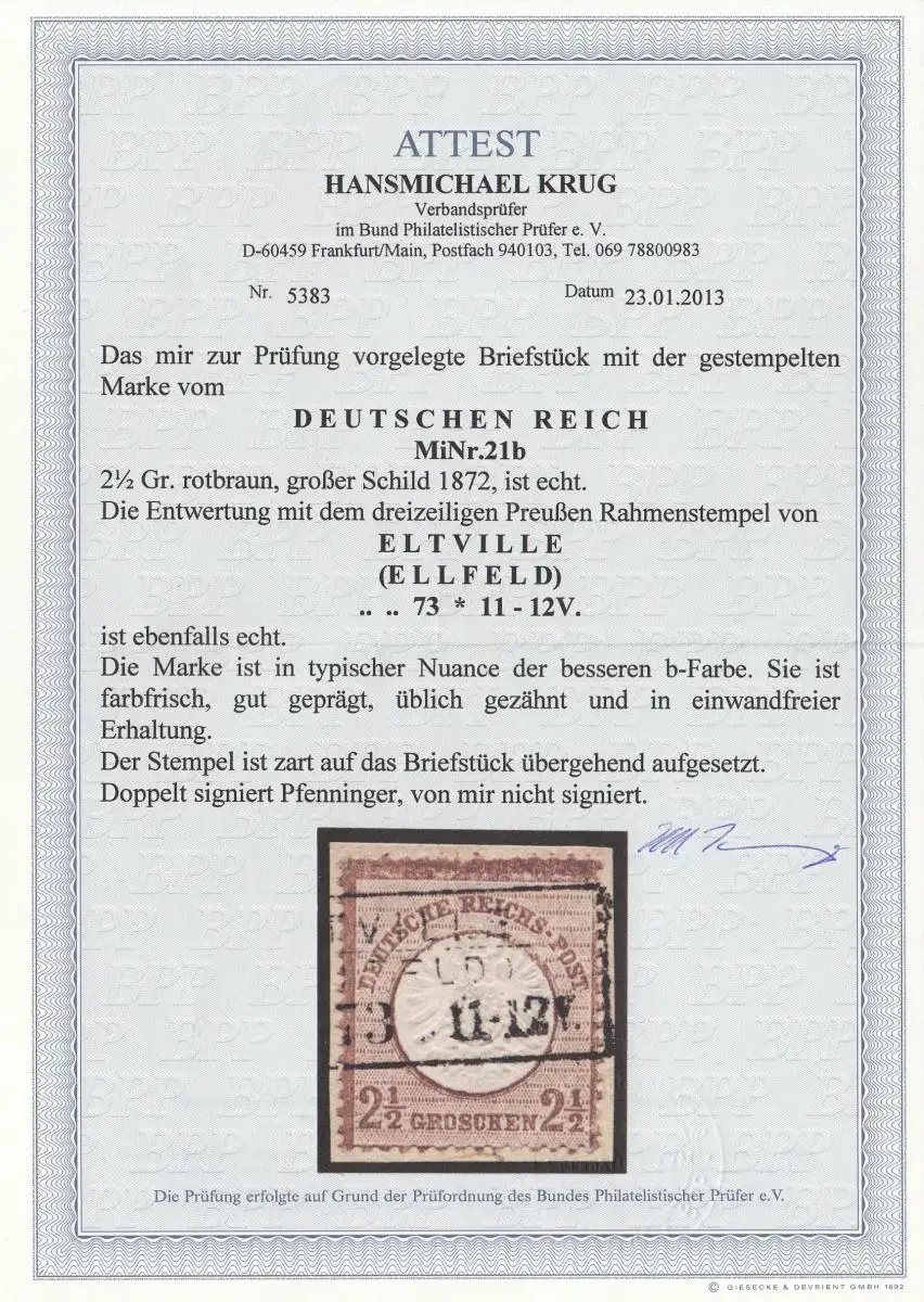 Reich allemand: Min. 21b, cacheté, BPP Attest