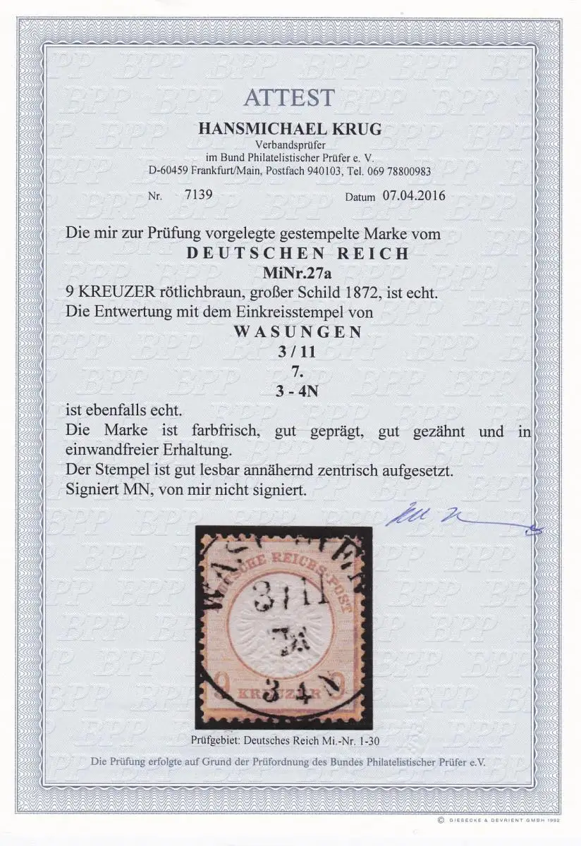 Reich allemand: Min. 27a, Wasungenstampt, BPP Attest