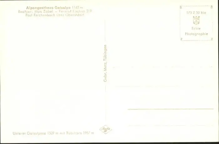 Reichenbach Oberstdorf Oberstdorf Reichenbach Oberstdorf Gasthaus Gaisalpe * Oberstdorf postalisch nicht gelaufen 1921-1965 Alte Ansichtskarte Postkarte