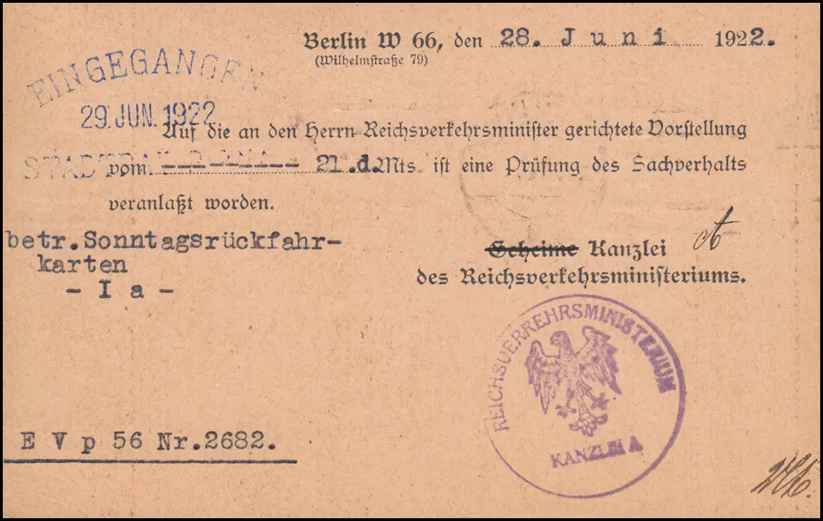 Tampon du ministre des Transports KANZLEI A, examen des faits Cartes de retour dimanche, carte postale à longue distance au Conseil de la ville de Pirna / Suisse Saxonne Numéro de catalogue: D24+25+30 Vérification: original Référence produit: 00000000029321>Note: Cet article n'est disponible qu'une seule fois. Vous recevrez exactement l'article représenté.