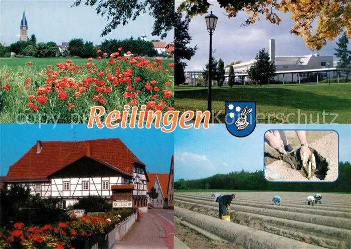 Reilingen Kategorie Alte Ansichtskarten Postkarten bx47153 Reilingen Spargelstecher Fritz Mannherz Hallen Gasthaus zum Loewen Reilingen postalisch nicht gelaufen nach 1965 Erhaltung siehe scans [PaolaD17]