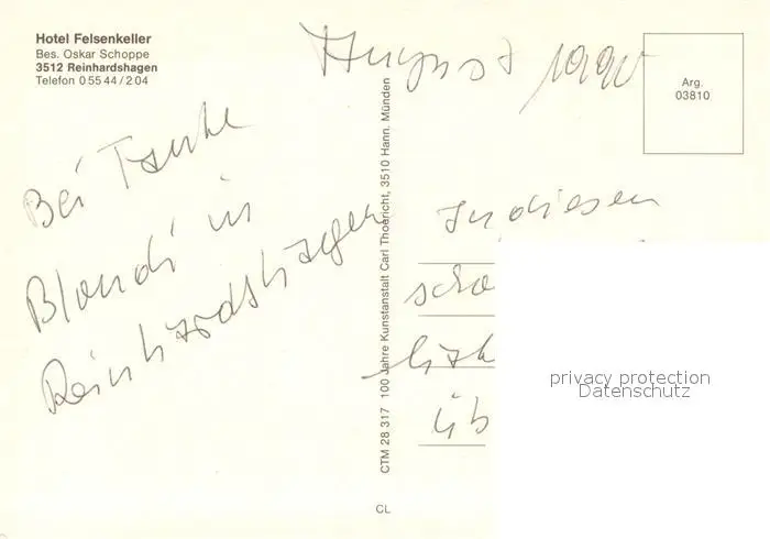 Reinhardshagen Hotel Restaurant Felsenkeller Terrasse Stadtpanorama Reinhardshagen postalisch nicht gelaufen 1990 Erhaltung siehe scans [FriedD77] Frierer