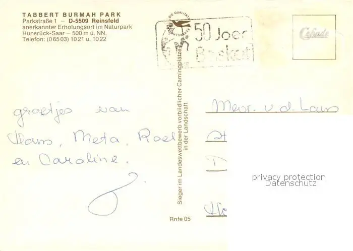Reinsfeld_Hunsrueck Tabbert Burmah Park Badesee Tennisplatz Reinsfeld Hunsrueck postalisch nicht gelaufen nach 1965 Erhaltung siehe scans [WerneD78] WernPID7