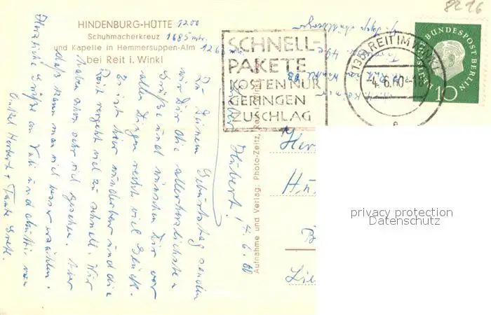 Reit_Winkl Hemmerszppenalm Hindenburg Huette Schumacherkreuz Kapelle Reit_Winkl postalisch gelaufen 1960 Erhaltung siehe scans [KathaD81] Kathoren