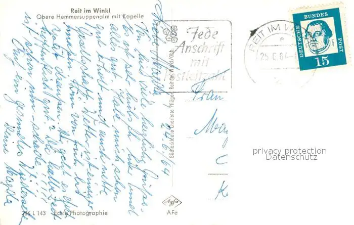 Reit_Winkl Obere Hemmersuppenalm Kapelle Reit_Winkl postalisch gelaufen 1964 Erhaltung siehe scans [KathaD81] Kathoren
