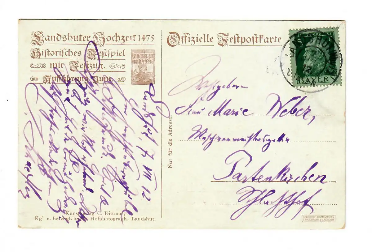 Remise en mariage Landshut, Brinzessing Hedwig, 1912 après Partenkirchen