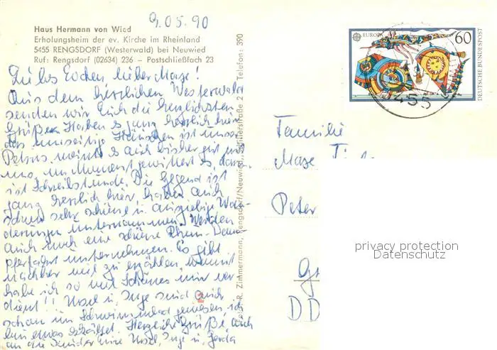 Rengsdorf Haus Hermann von Wied Rengsdorf postalisch gelaufen 1990 Erhaltung siehe scans [WerneD78] WernPID7