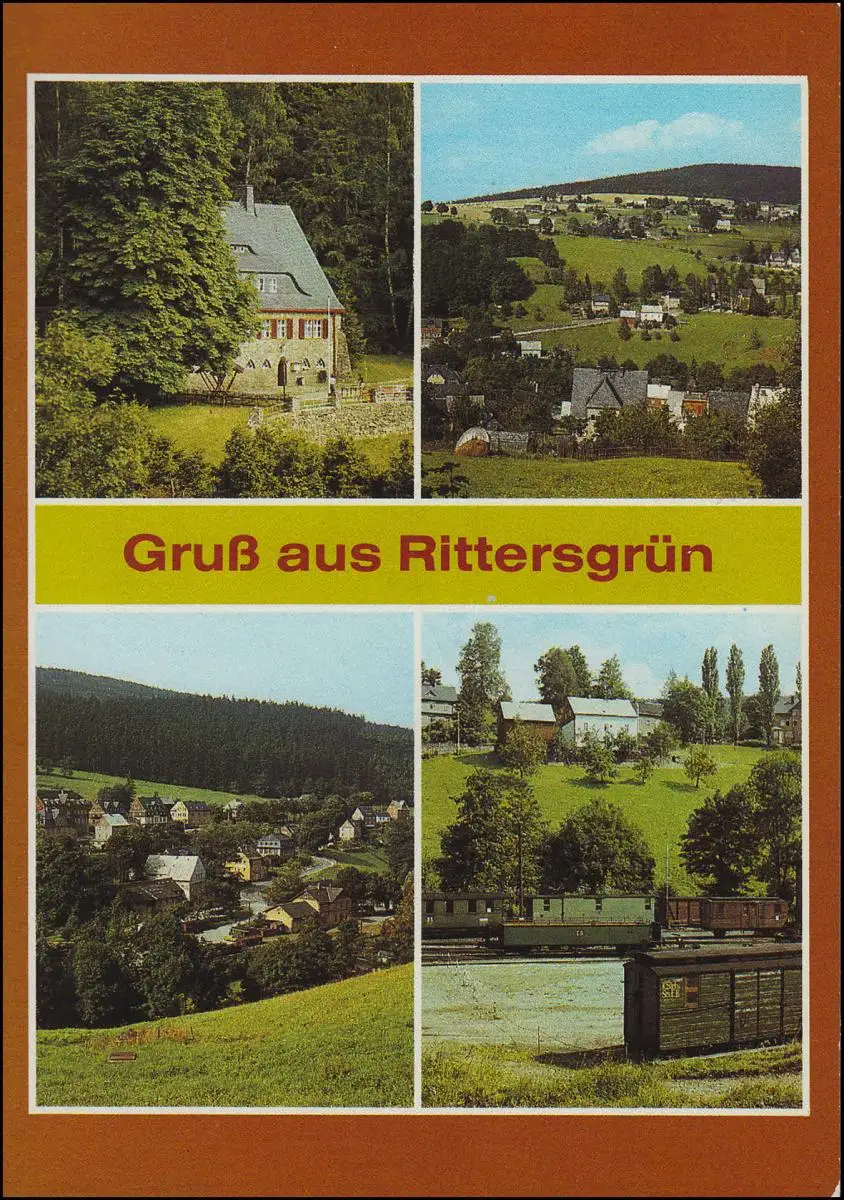 Carte de vue Salut en vert chevalier (4 images) avec cachet "Soumis au mouvement du musée" et cachet spécial approprié RITTERSGRünn MUSEUM Gare des voies étroites du vert du chevaliers 29.10.84 Vérification: original Numéro d'article: 00000000047102