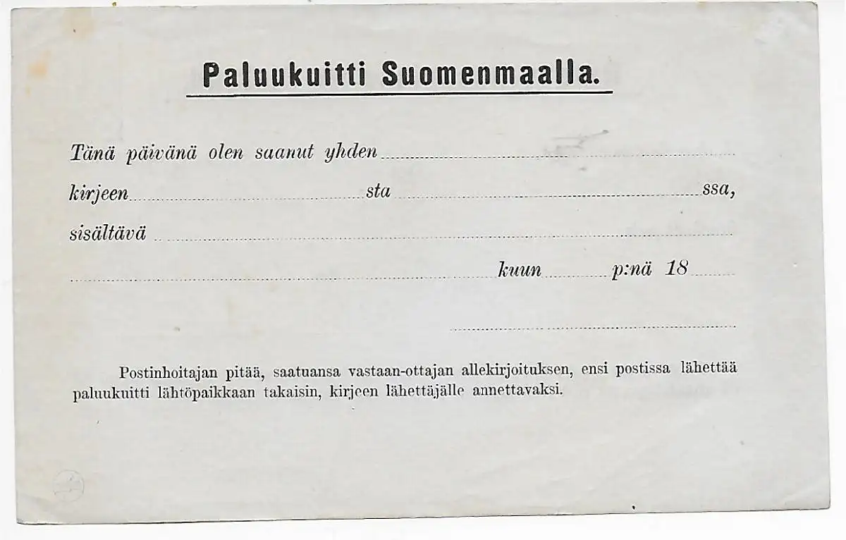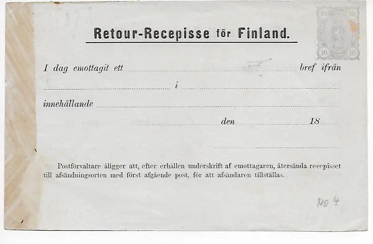 Retour-Recepisse för Finland, No 4