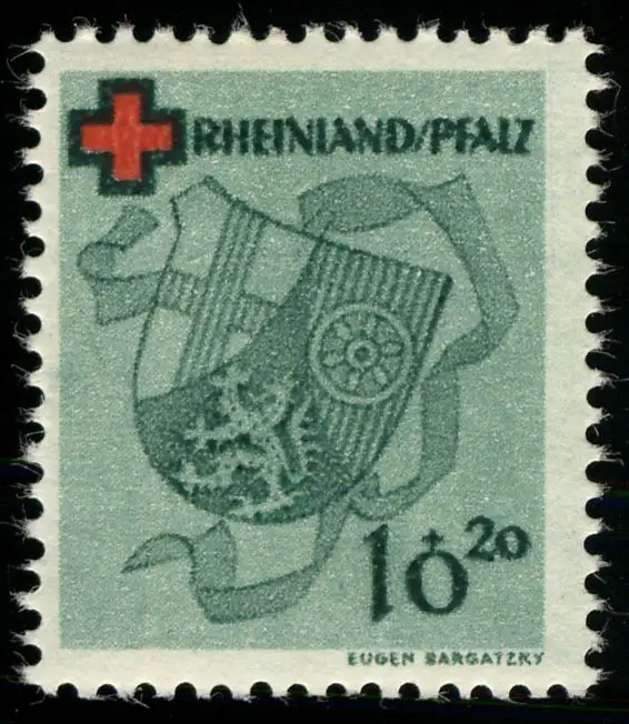 Rhénanie-Palatinat 42A Croix-Rouge 10 Pf. dentées **