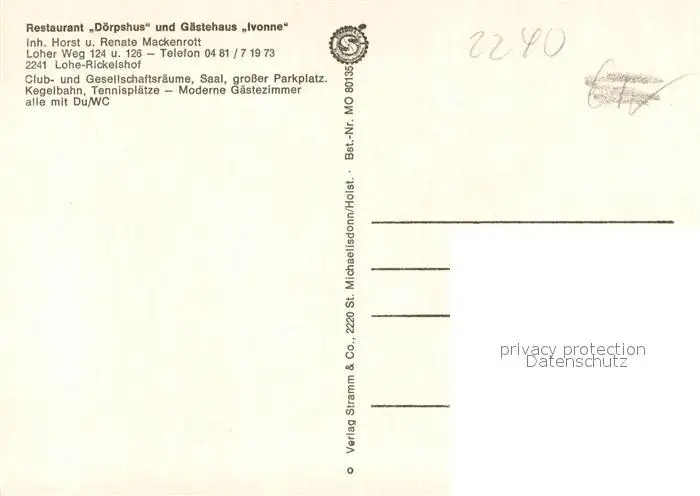 Rickelshof_Lohe Restaurant Doerpshus Gaestehaus Ivonne Fremdenzimmer Rickelshof Lohe postalisch nicht gelaufen nach 1965 Erhaltung siehe scans [FriedD77] Frierer