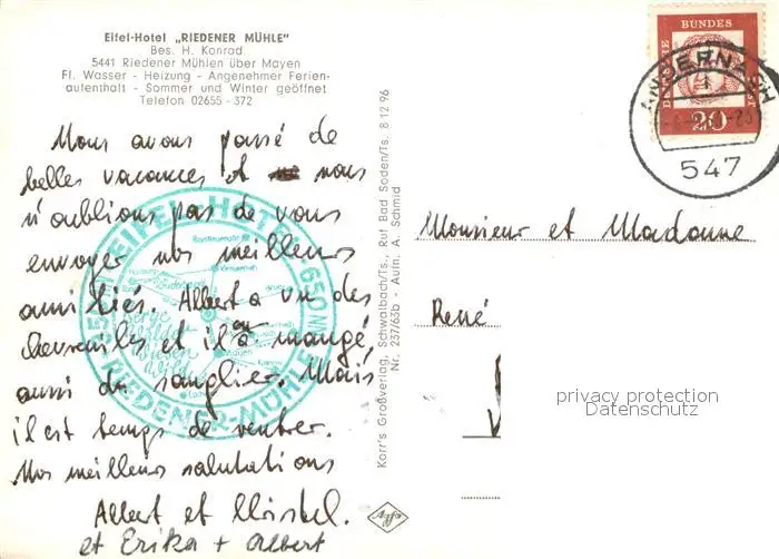 Riedener_Muehlen Eifel Hotel Riedener Muehle Schwanenteich Riedener_Muehlen postalisch gelaufen nach 1965 Erhaltung siehe scans [WerneD78] WernPID7