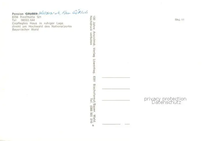 Riedlhuette Pension Gruber Panorama Gaststube Nationalpark Bayerischer Wald Riedlhuette postalisch nicht gelaufen nach 1965 Erhaltung siehe scans [WerneD78] WernPID7