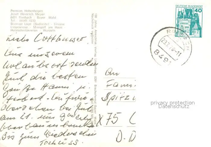 Rimbach_Bayrischer_Wald Pension Hohenbogen Gastraum Panorama Rimbach_Bayrischer_Wald postalisch gelaufen 1978 Erhaltung siehe scans [WerneD78] WernPID7