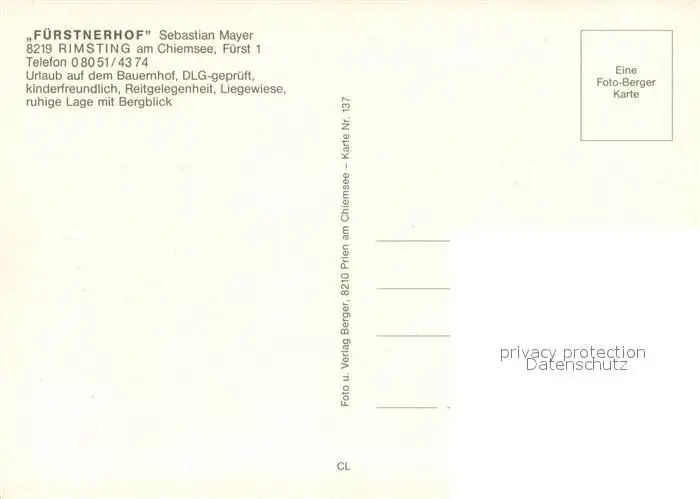 Rimsting Fuerstnerhof Rimsting postalisch nicht gelaufen nach 1965 Erhaltung siehe scans [WerneD78] WernPID7