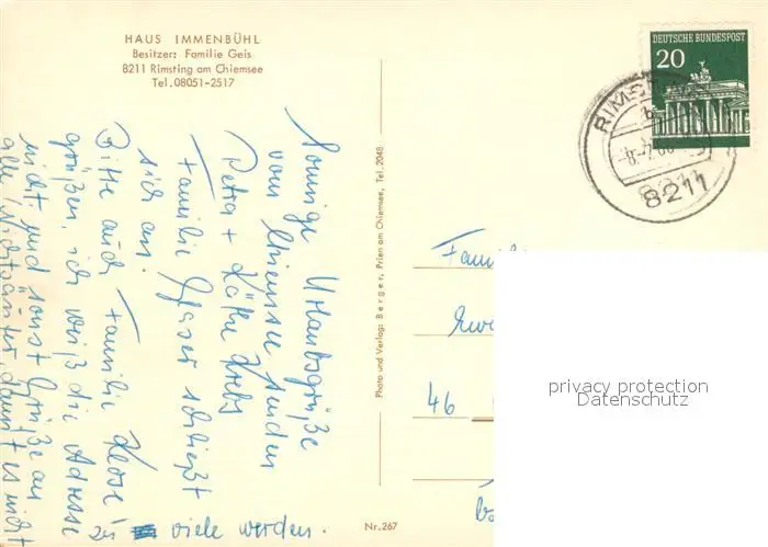 Rimsting Haus Immenbuehl Rimsting postalisch gelaufen 1966 Erhaltung siehe scans [WerneD78] WernPID7