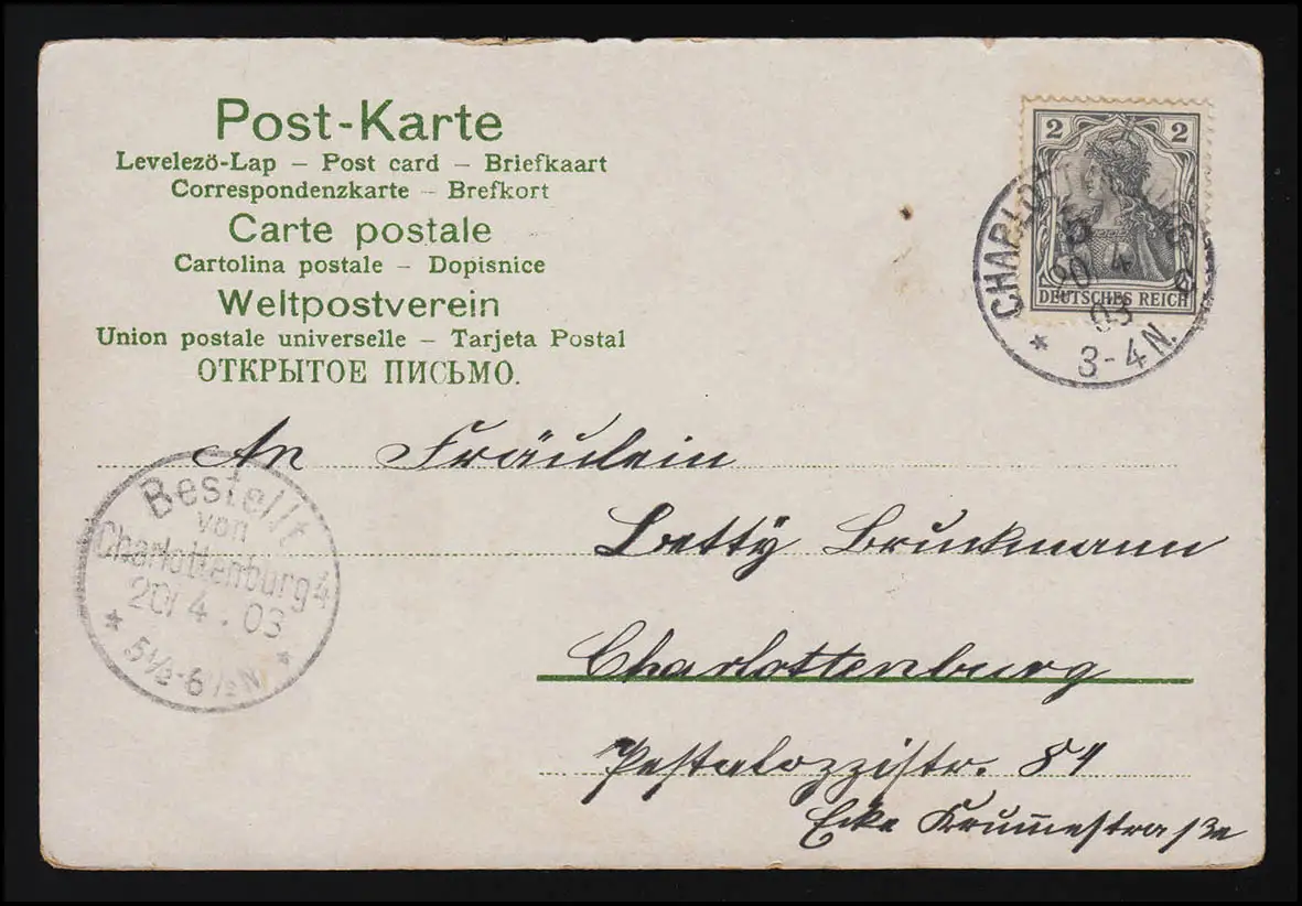 Roses Ranken au moulin à vent Paysage, carte postale locale CHARLOTENBURG 20.4.2003
