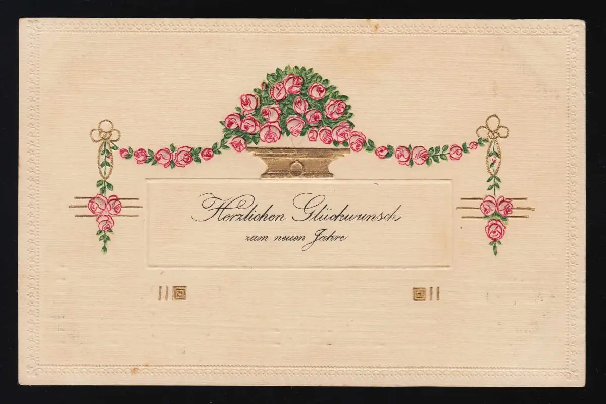 Roses bol d'or + Girlande Félicitations pour la nouvelle année Stuttgart 30.12.1910