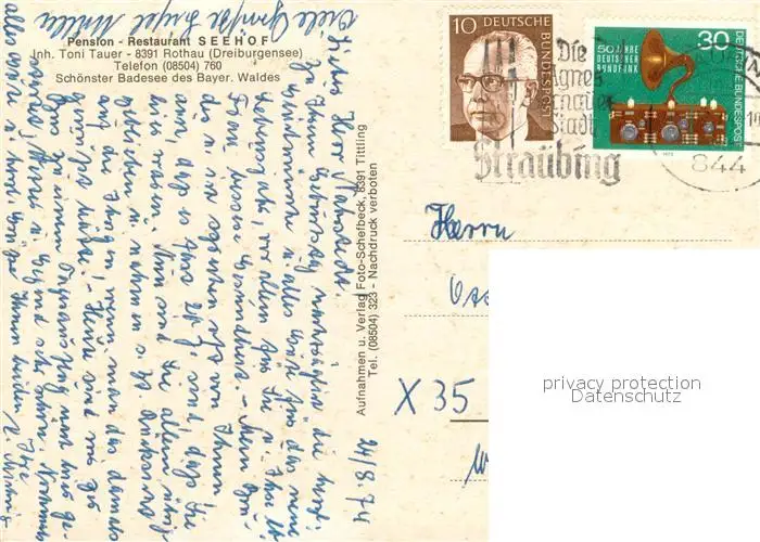 Rothau_Dreiburgensee Pension Restaurant Seehof am Dreiburgensee Gastraum Terrasse postalisch gelaufen 1974 Erhaltung siehe scans [WerneD78] WernPID7