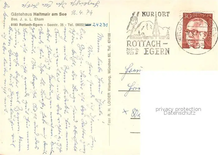 Rottach-Egern Gaestehaus Haltmair am See Gastraeume Treppenaufgang Rottach-Egern postalisch gelaufen 1974 Erhaltung siehe scans [WerneD78] WernPID7