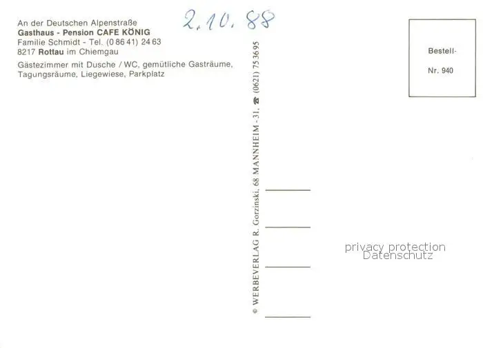 Rottau_Chiemgau Gasthaus Pension Cafe Koenig Rottau Chiemgau postalisch nicht gelaufen 1988 Erhaltung siehe scans [WerneD78] WernPID7
