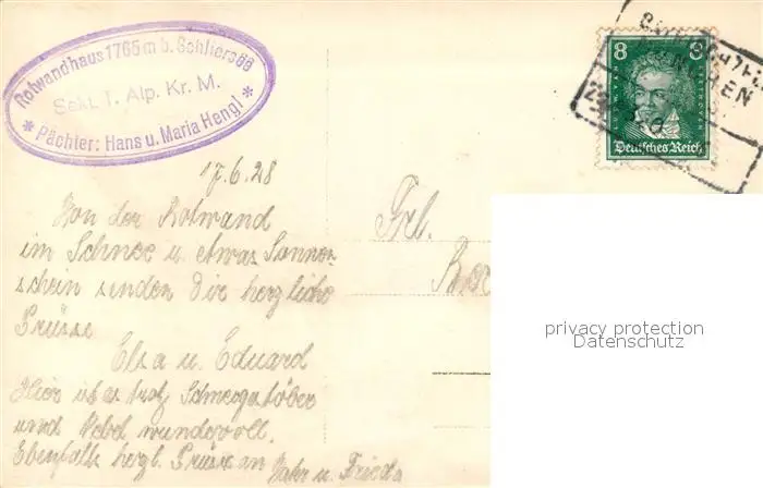 Rotwandhaus Rotwand Gipfel Rotwandhaus postalisch gelaufen 1928 Erhaltung siehe scans [KathaD81] Kathoren