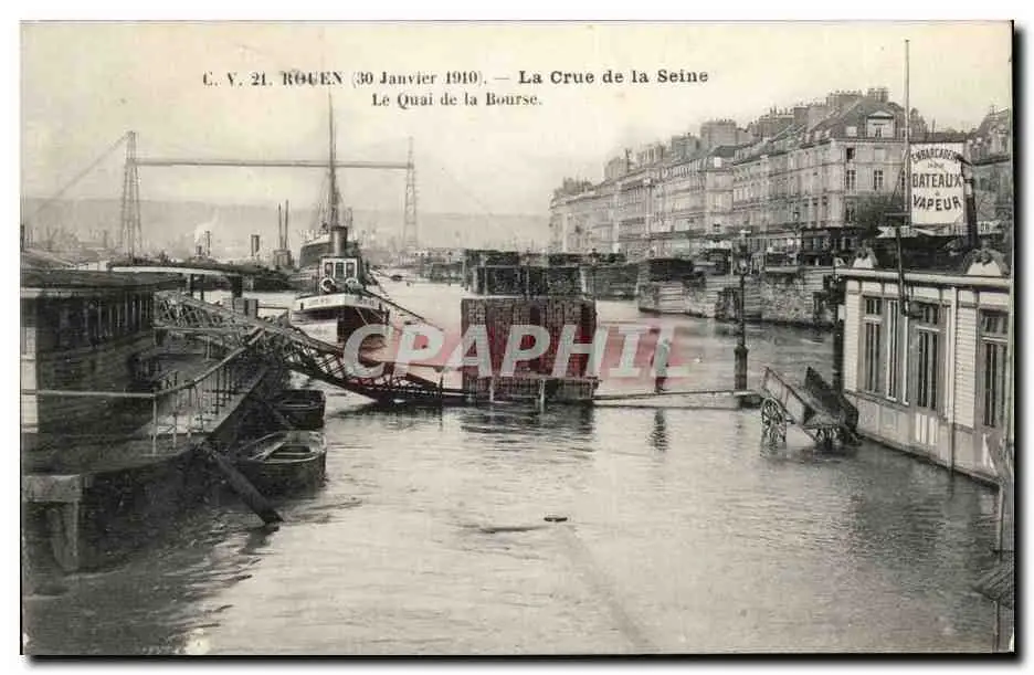 Rouen Cartes postales 30 janvier 1910 La crue de la Seine Le quai de la Bourse