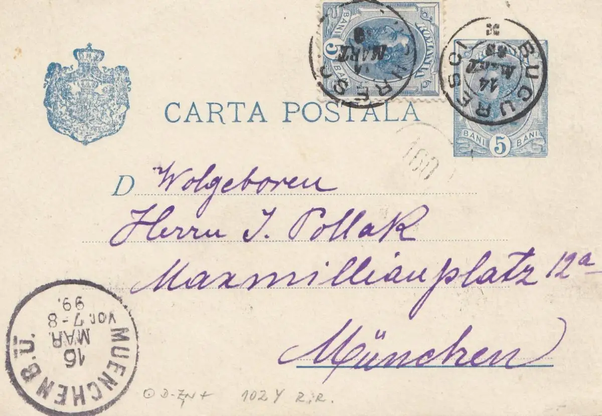 Roumanie: 1899: Bucureci vers Munich