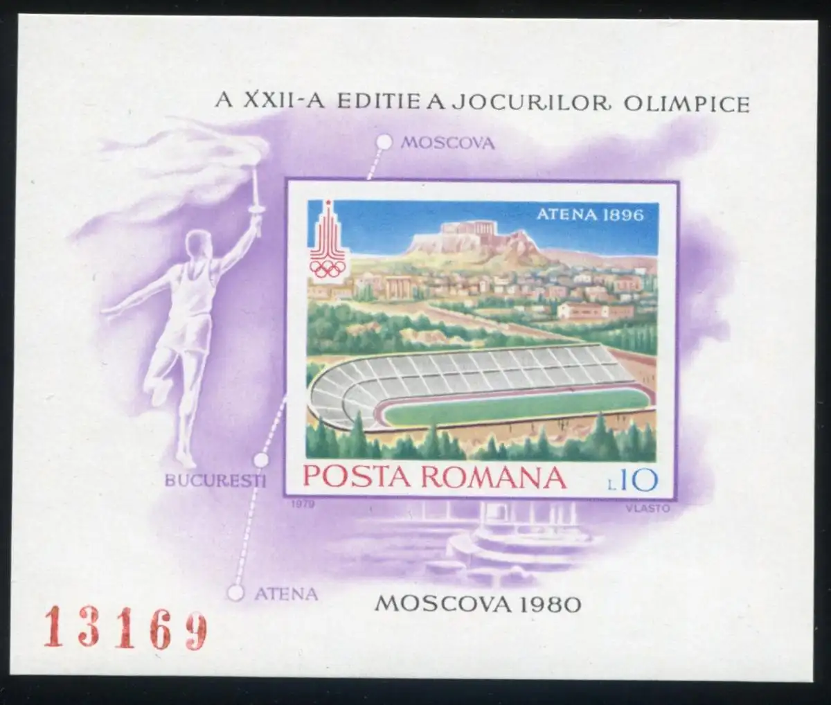 Roumanie Block 162 Olympia Moscou 1980: Athènes Flyfling Stadium, ** / MNH