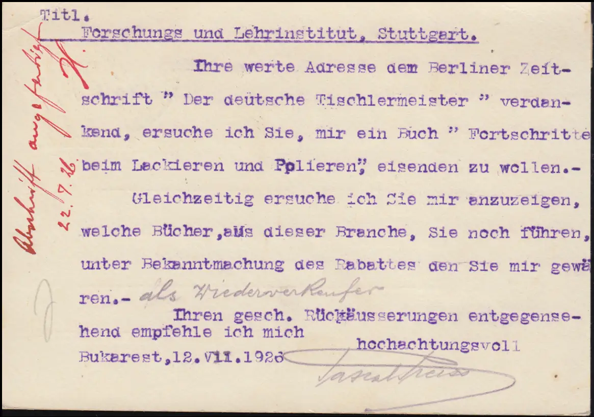 Roumanie Carte postale P 72 avec structure supplémentaire BUKAREST vers Stuttgart