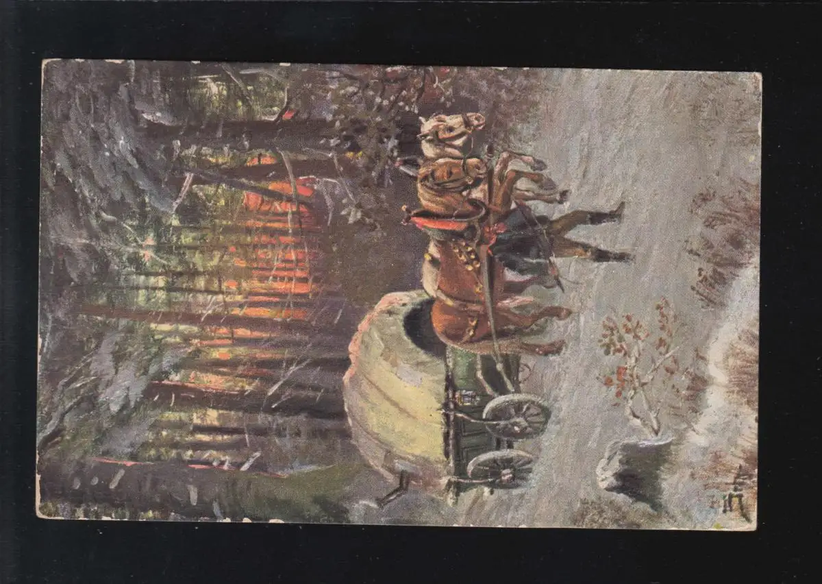 Route Route expédition cheval Neige Forêt Artiste signé, Wengen Autriche