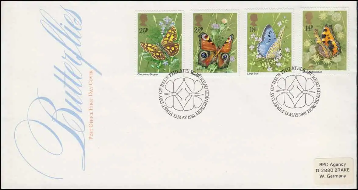 Royaume-Uni: 875-878 papillons 1981, 4 valeurs, ensemble sur le FDC de bijoux