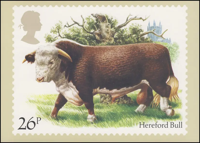 Carte postale Cattle (Hereford Bull) de la série de cartes PHG 73 (c) 3/84 Examen: original Numéro d'article: 00000000031598
