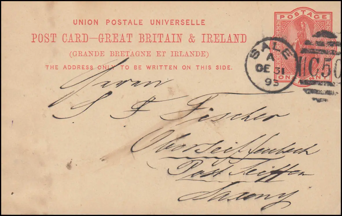 Royaume-Uni Carte postale P 26 DUP SALE C 50 - 31.12.1893 vers Oberseiffenbach