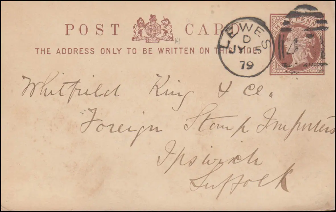 Royaume-Uni Carte postale Reine Victoria Half Penny DUP LEWES 5.7.1879