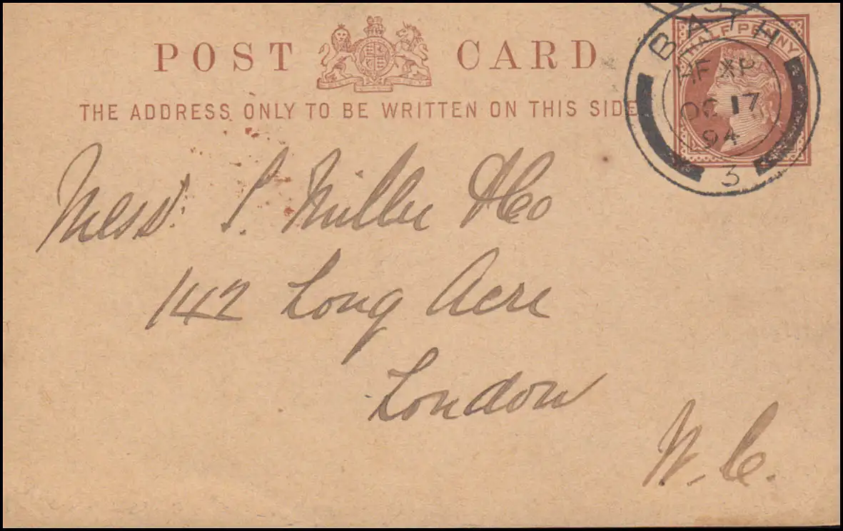 Royaume-Uni Carte postale Reine Viktoria Half Penny Bath 3 -17.10.1894